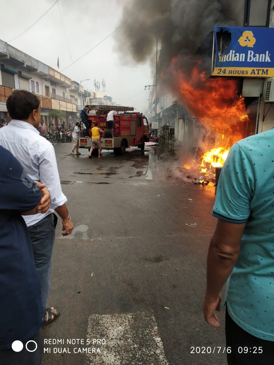 ફાયરની ગાડીએ આગ પર તાત્કાલિક કાબૂ મેળવી લીધો હતો જેથી બાજુમાં આવેલ બેંકમાં આગ પ્રસરતા અટકી અને મોટી દુઘર્ટના ટડી હતી.
