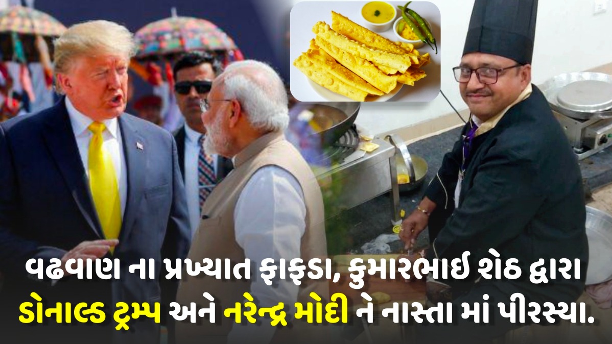 શું તમે જાણો છો કે વાઢવાણ, સુરેન્દ્રનગર જિલ્લા ના પ્રખ્યાત કુમારભાઇ શેઠે ટ્રમ્પ માટે વિશેષ ગુજરાતી ફફડા બનાવ્યા છે? હા, કુમારભાઈ શેઠ તેમના સ્વાદિષ્ટ ફાફડા ગુજરાતમાં પ્રખ્યાત છે, અને આ વખતે તેમના ફાફડા ડોનાલ્ડ ટ્રમ્પ અને તેના પરિવારને પીરસવામાં આવેલા.