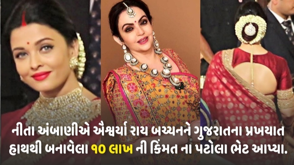સુત્રોના જણાવ્યા મુજબ: નીતા અંબાણીએ ગુજરાતના હાથથી બનાવેલા પટોલાને ઐશ્વર્યા રાય બચ્ચનને 10 લાખ રૂપિયાની કિંમતે ભેટ આપી હતી.