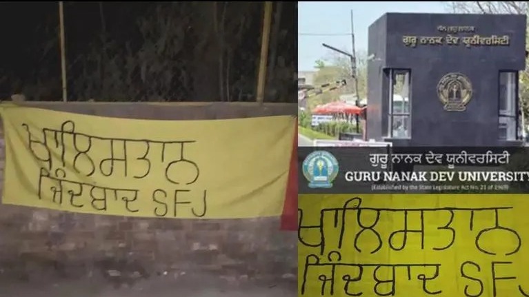 પંજાબમાં G20 સમિટ પહેલા, ખાલિસ્તાન તરફી અલગતાવાદી સંગઠન શીખ્સ ફોર જસ્ટિસ (SFJ) એ અમૃતસરની ગુરુ નાનક દેવ યુનિવર્સિટીમાં ખાલિસ્તાની પોસ્ટરોનું નિશાન બનાવ્યું હતું. ગુરુ નાનક દેવ યુનિવર્સિટીની દીવાલો પરથી લટકેલા પોસ્ટરોમાં લખ્યું છે કે 'પંજાબ ભારત નથી, ખાલિસ્તાન ઝિંદાબાદ છે.'અહેવાલ મુજબ, SFJ