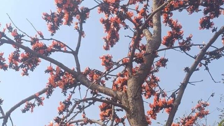 પંચમહાલ જીલ્લામાં શહેરા તાલુકામા આવેલા જંગલવિસ્તારમાં ખાખરાના વૃક્ષો પર કેસુડાના ફુલો ખીલી ઉઠ્યા છે.કેસૂડાના ફુલો ખીલતા મનોરમ દશ્ય સર્જાઈ રહ્યુ છે.પાનમ સહિતના જંગલમાં અસંખ્ય ખાખરાના વૃક્ષો આવેલા છે.શહેરાથી ગોધરા જતા વખતે રસ્તામા દલવાડા,ખાંડીયાના જંગલો આવે છે. આ જંગલમાં પણ અસંખ્ય