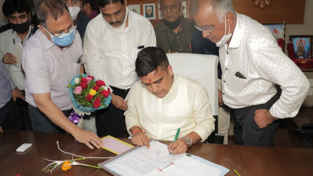 નવા મંત્રી મંડળમા ભાજપના સૌથી યુવા ગૃહ રાજ્યમંત્રી બનેલા હર્ષ સંઘવીએ ભારતમાતાની પૂજા કરી ચાર્જ સંભાળ્યો