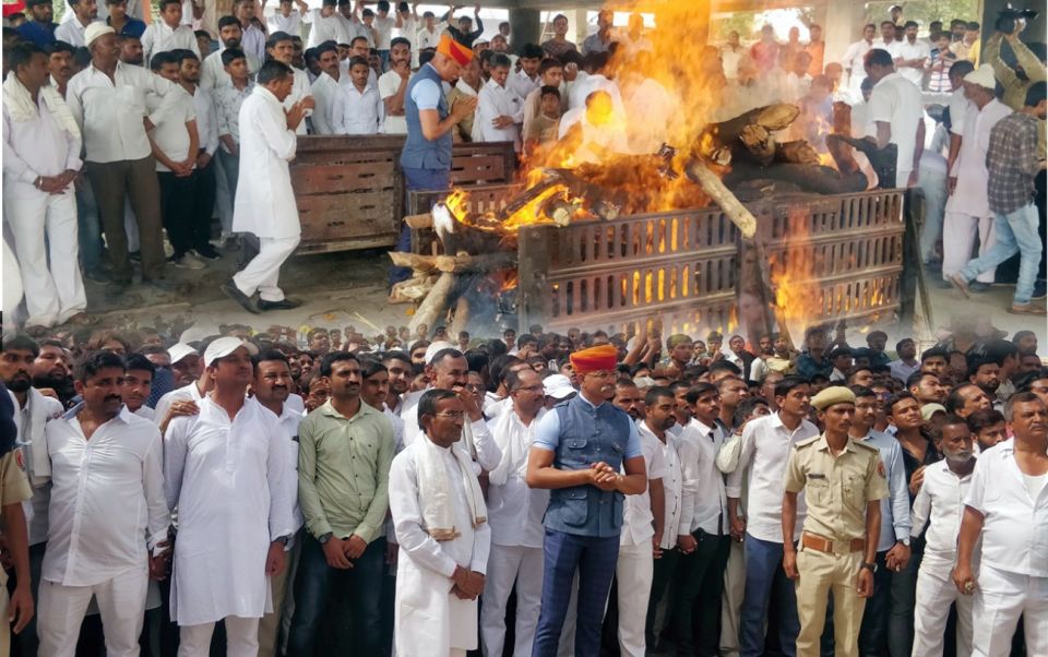 જ્યારે 10 વર્ષનાપુત્ર વિશ્વરાજસિંહે પિતા શહીદ ભરતસિંહ પરમાર ને મુખાગ્ની આપતા સ્મશાનમાં ઉપસ્થિત હજારો લોકોએ વીરશહીદ અમર રહોના નારા સાથે અંતિમ વિદાય આપી હતી.
