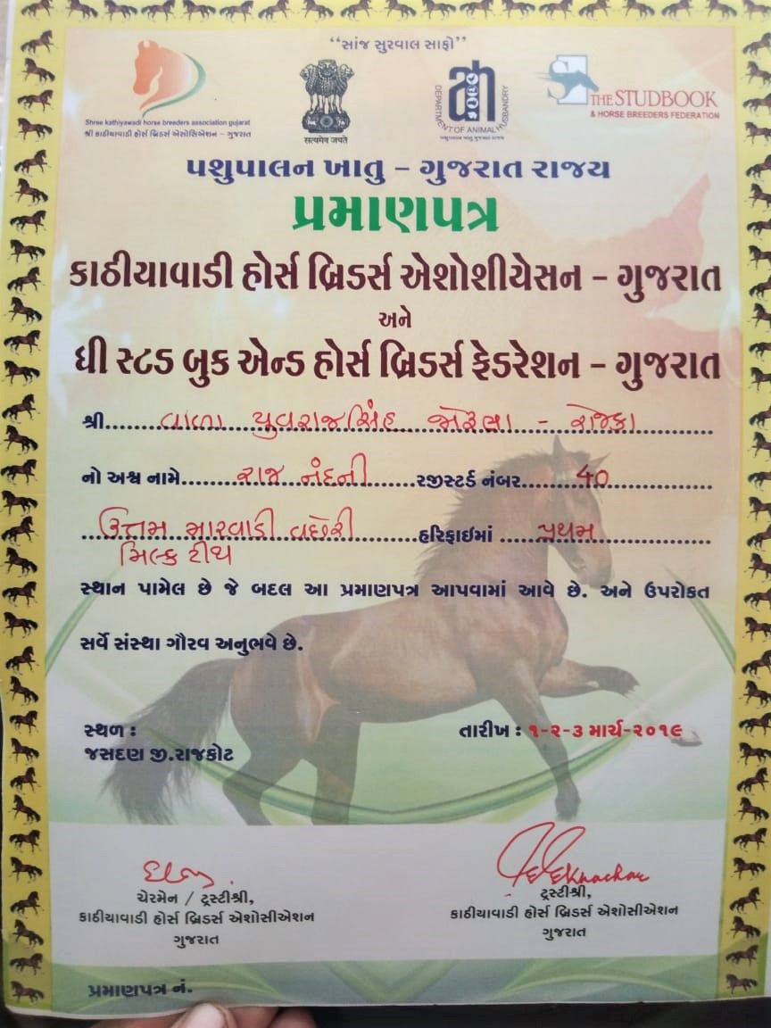 અશ્વ વિશે વધુ માહિતી કે માર્ગ દર્શન માટે ફેસબુક પર અશ્વપ્રેમી યુવરાજસિંહ વાળા ની પ્રોફાઈલ ફોલ્લૉ કરવા માટે આ લિંક પર ક્લિક કરો: facebook.com/yuvrajsinhjivala