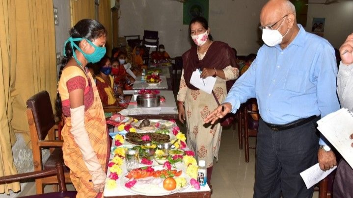 ગોધરા,પંચમહાલ જિલ્લામાં બાળકો અને સગર્ભા-ધાત્રી માતાઓમાં પોષણની સ્થિતિ સુધારવાના પોષણ માહ અભિયાનની થઈ રહેલી ઉત્સાહભેર ઉજવણી અંતર્ગત આજે પોષક વાનગીઓની હરિફાઈ યોજાઈ હતી. જનસામાન્યમાં પોષણયુક્ત ખોરાક અંગે જાગૃતિ લાવવાના ઉદ્દેશ્યથી એક નવતર પ્રયોગના ભાગરૂપે પૌષ્ટિક વિસરાતી વાનગી અથવા ટીએચઆરનો ઉપયોગ કરી વાનગીઓ બનાવવાની આ સ્પર્ધામાં ઈન્ચાર્જ જિલ્લા કલેક્ટર અને જિલ્લા વિકાસ અધિકારી એ.જે.શાહે ઉપસ્થિત રહી નિદર્શિત કરાયેલ વાનગીઓનું નિરીક્ષણ કર્યું હતું તેમજ કુપોષણ સામેની લડાઈમાં બાળકોને ભાવે તેવી રેસીપીઓ વિકસાવવાના મહત્વ અંગે માર્ગદર્શન આપ્યું હતું.