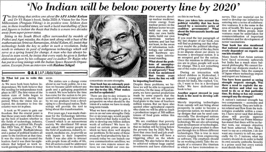 એ. પી. જે. અબ્દુલ કલામ: ભારતના ભૂતપૂર્વ રાષ્ટ્રપતિ અને નાસા અને ઇસરો (ભારતીય અવકાશ સંશોધન સંગઠન) ના એરોસ્પેસ સાયન્ટિસ્ટ, તેમના પુસ્તક "ભારત 2020" માં ભારપૂર્વક હિમાયત કરે છે કે, ભારત વિશ્વ મહાસત્તા બનશે.