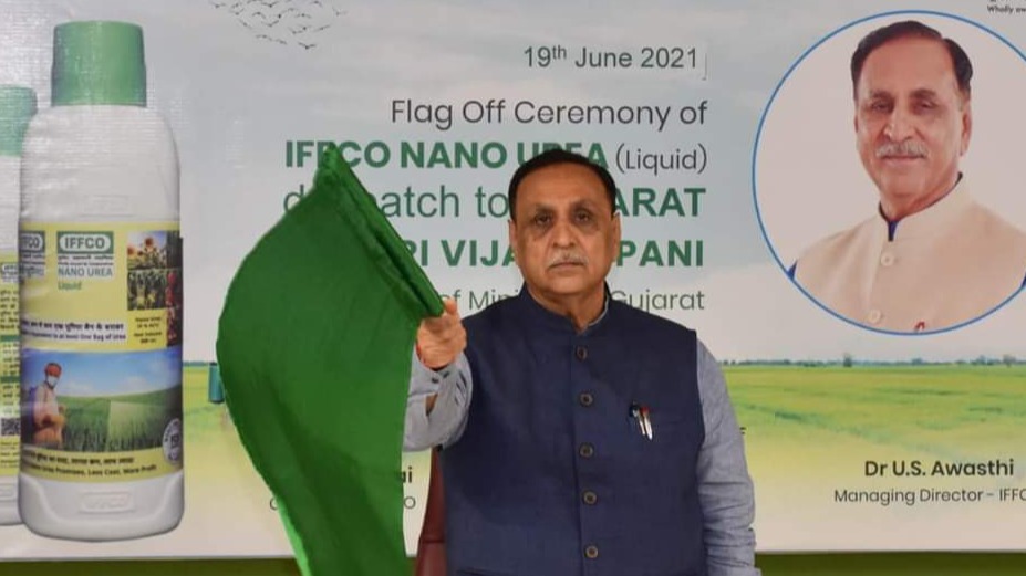 વિશ્વના પ્રથમ નેનો યુરિયા લિક્વિડ ખાતરનો ફ્લેગ ઓફ મુખ્યમંત્રી વિજય રૂપાણીએ કરાવ્યો